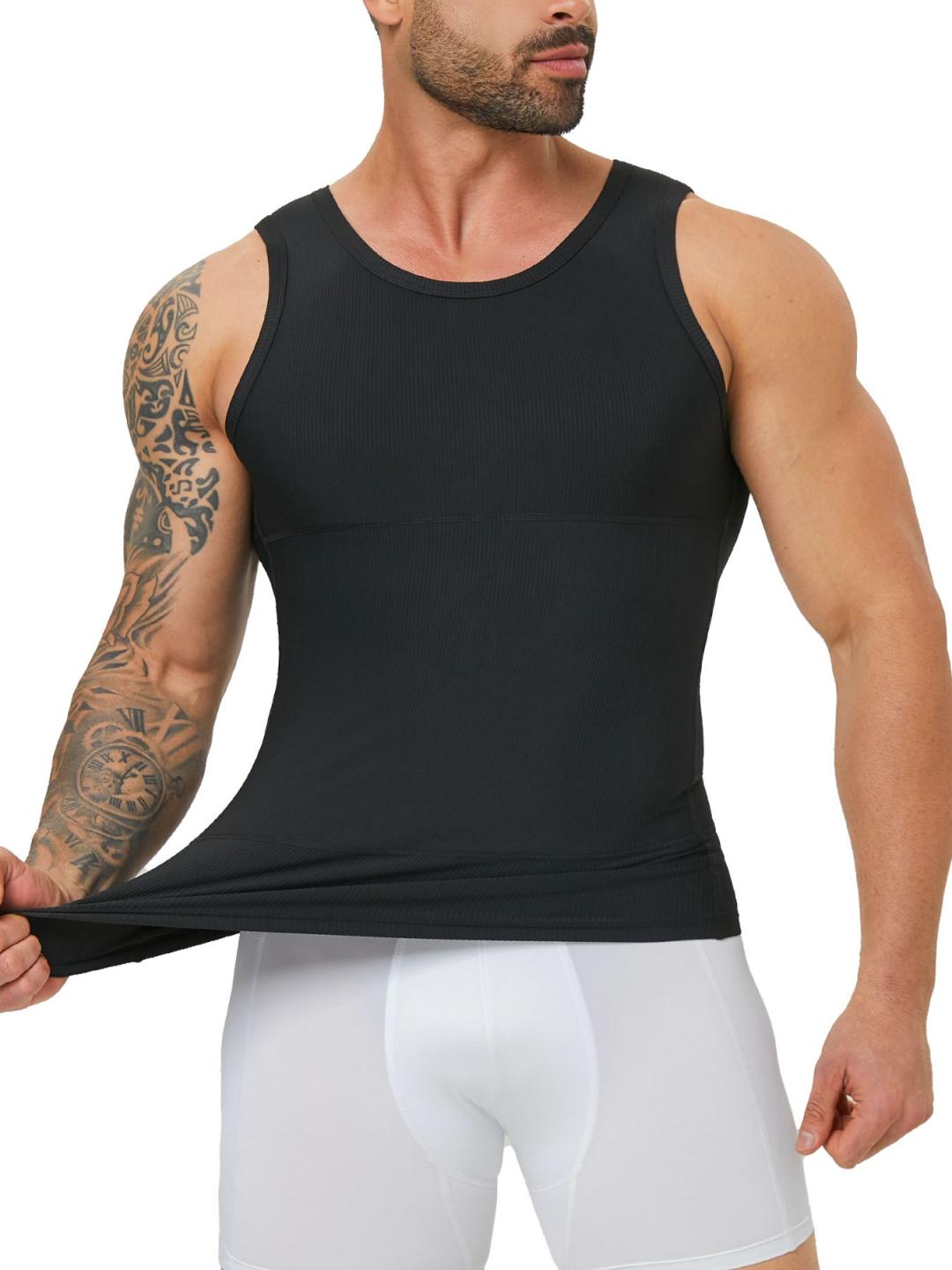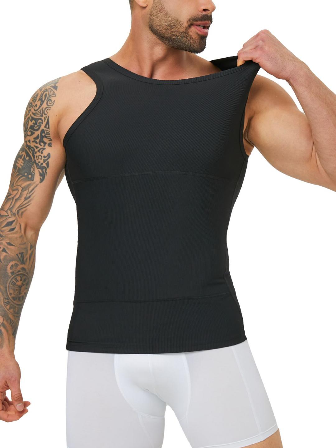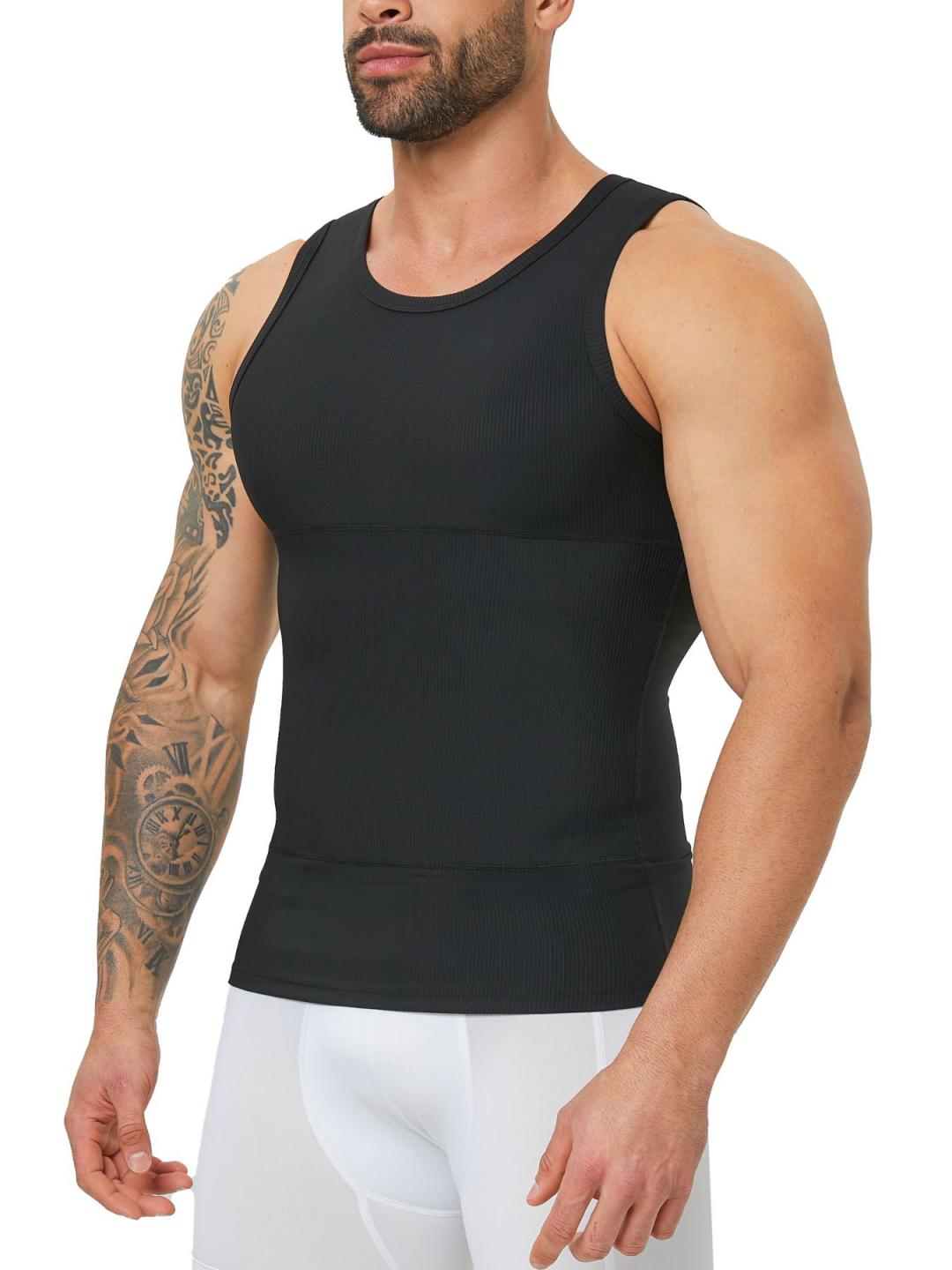 TOP MATERIAL – Our shaper tank men slimming shirt with Four-way stretch ribbed fabric 75%Nylon and 25%Elastane, with enough compression and all day comfortable wear. High elastic compression vest for men supports flexible movement.