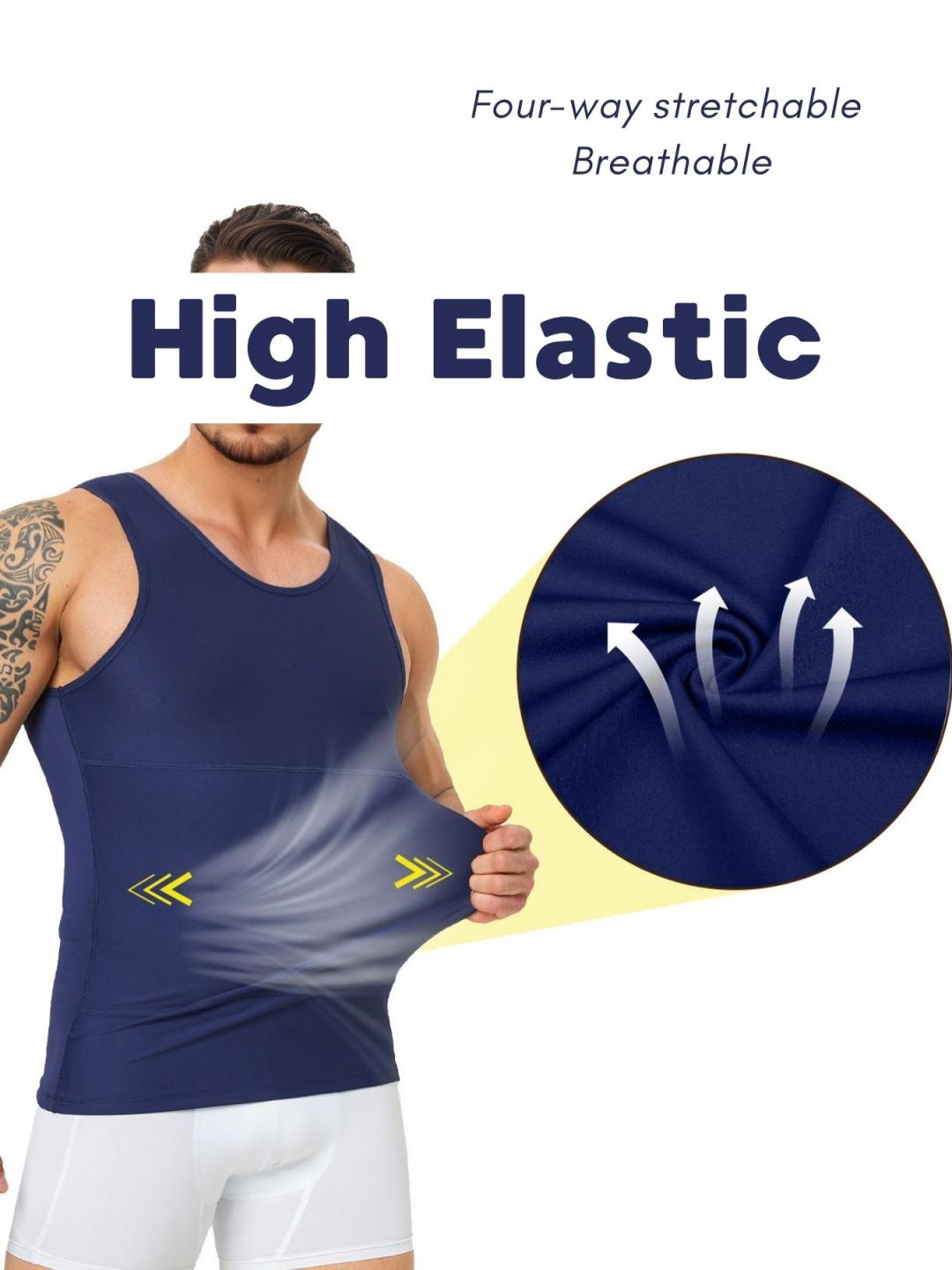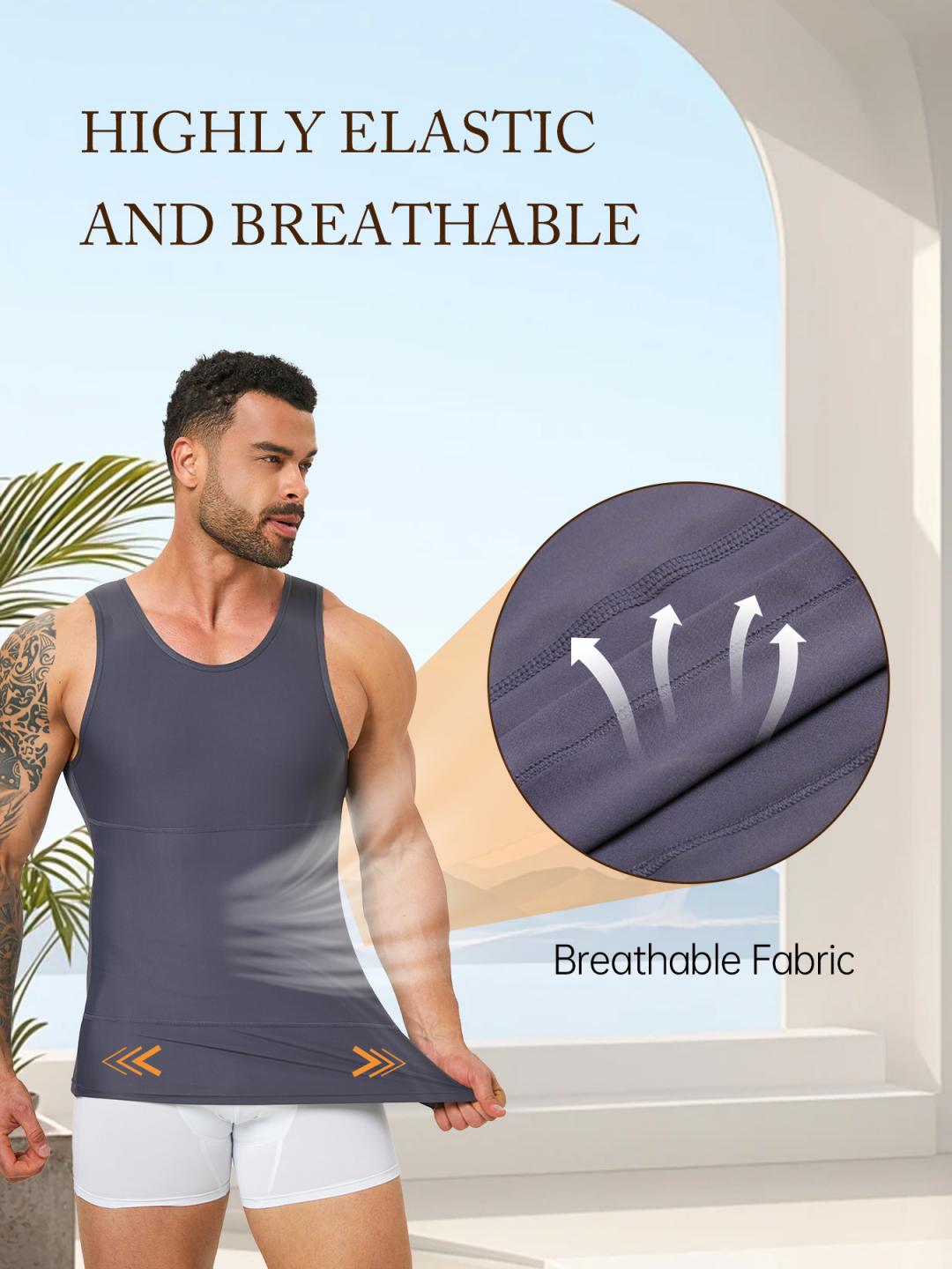 TOP MATERIAL – Our shaper tank men slimming shirt with Four-way stretch cooling fabric 75%Nylon and 25%Elastane, with enough compression and all day comfortable wear. High elastic compression vest for men supports flexible movement.