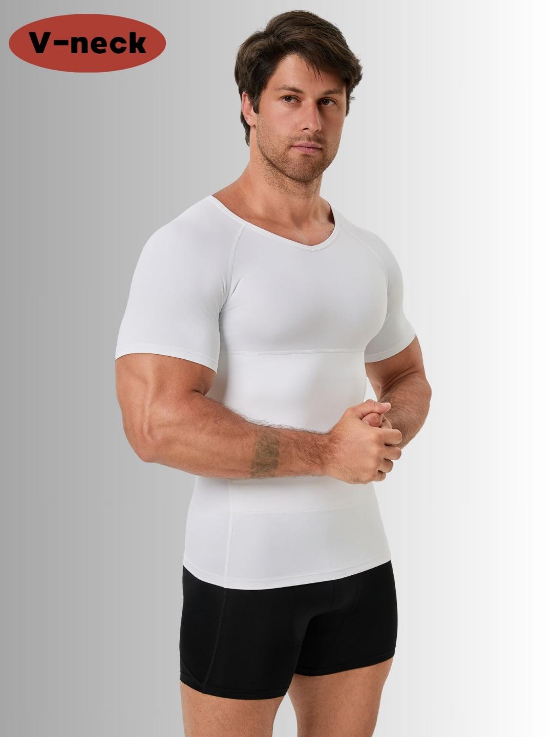 V-neck Men’s Compression Shirts Body Shaper For Gynecomastia & Tummy Control